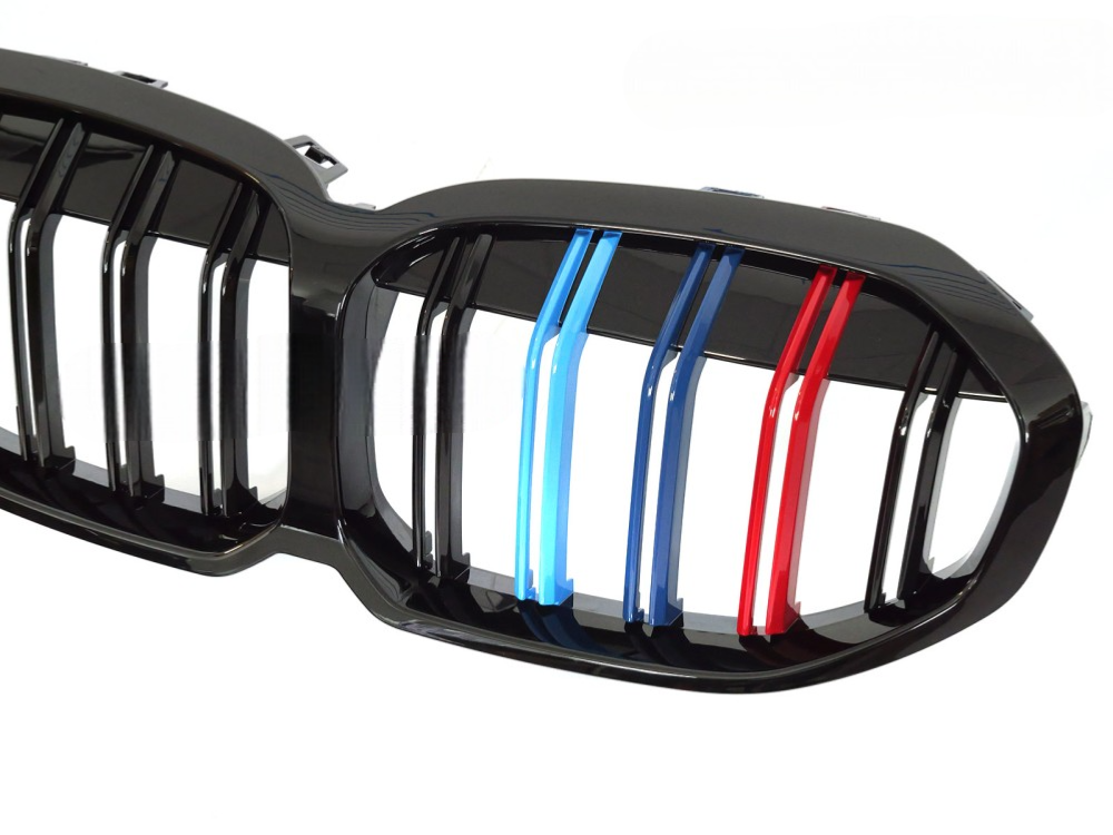 Grille de calandre avant BMW Serie 1 F40 de 2019 a 2024 Double barre noir brillant + tricolor