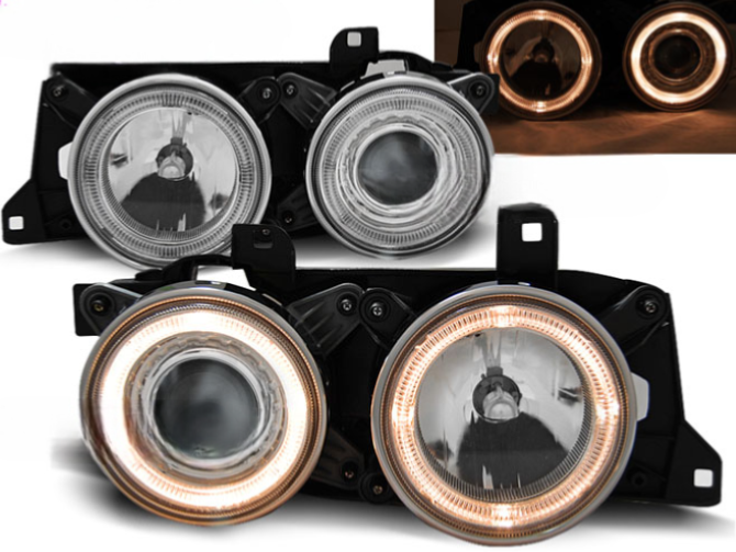 Paire de feux phares pour BMW E32 / E34 angel eyes chrome