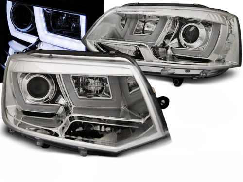 Paire de feux phares VW T5 de 2010 a 2015 U-Type DRL led chrome