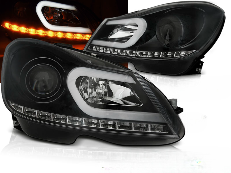 Paire de feux phares Mercedes classe C W204 de 2011 a 2014 Daylight led LTI noir